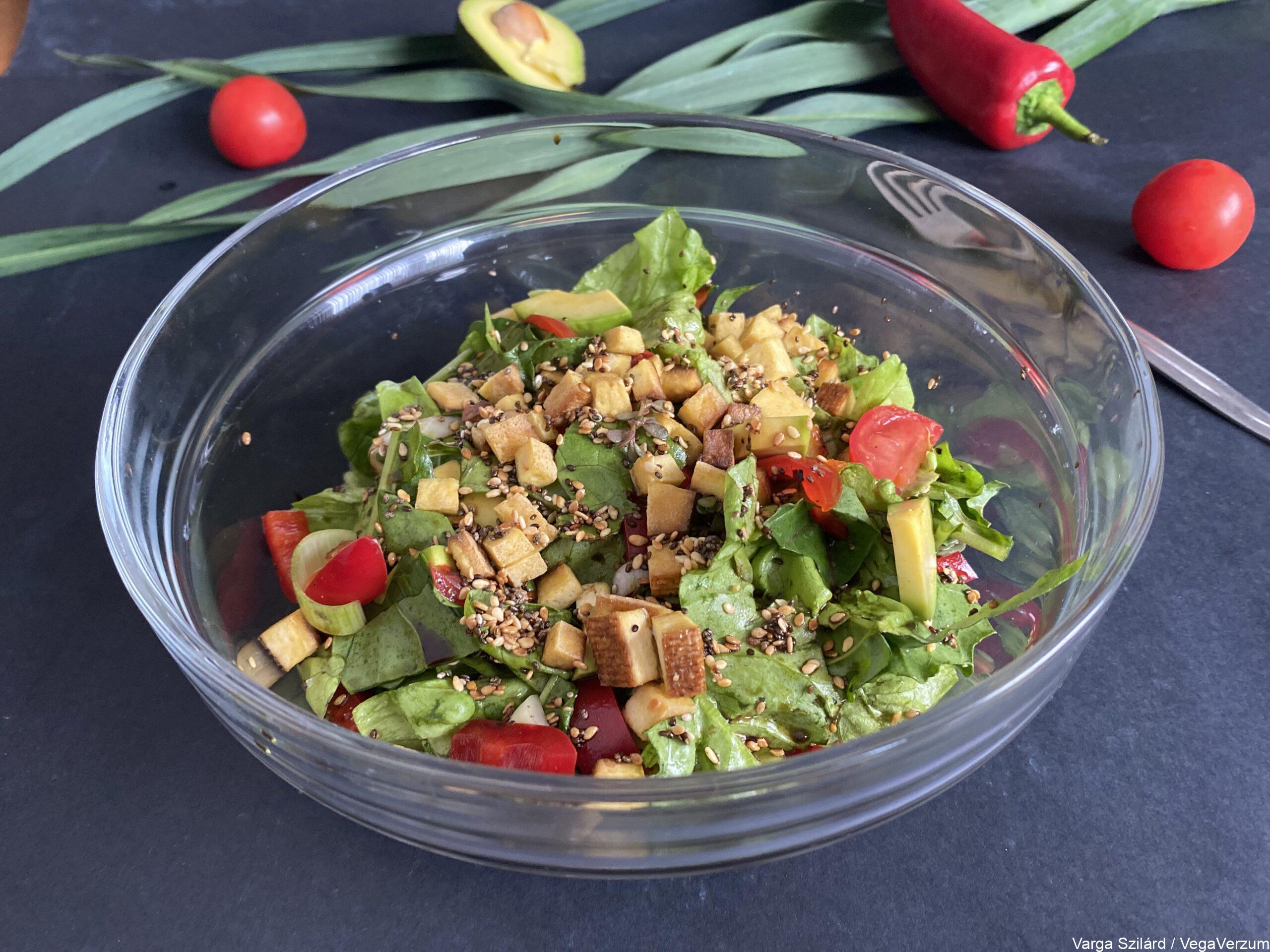 Vegán füstölt tofus nyári saláta: ropogós magvakkal